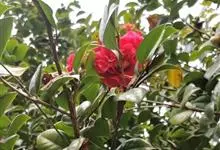 滇山茶:灌木至小乔木,有时高达15米,嫩枝无毛。叶阔椭圆形,上面干后深绿色,发亮,下面深褐色,无毛,侧脉6-7对,边缘有细锯齿。花顶生,红色,直径10厘米,无柄;苞片及萼片10-11片,花瓣红色,…全部>>