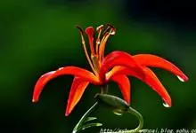 山丹是百合科百合属的多年生草本植物。鳞茎卵形或圆锥形,鳞片长圆形或长卵形,白色;叶散生茎中部,线形,边缘有乳头状突起;花单生或数朵成总状花序,花鲜红色,常无斑点,花被片反卷,…全部>>