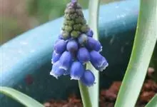 葡萄风信子,是天门冬科蓝壶花属的多年生草本优良观花地被植物,为小型花卉球根植物。根具鳞茎,卵形或近球形,株高5-10cm;基生叶半圆柱状线形;花葶不分枝,总状花序,长椭圆状柱形;花深蓝色,近球形,坛状,…全部>>