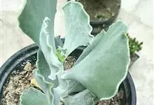 银波锦 DC.)是景天科、银波锦属植物。多浆肉质灌木。茎肉质,直立,株高30-60厘米,小枝白色。对生叶,叶片倒卵形,边缘呈波状,叶面密被银灰色粉,叶长8-12厘米,宽6厘米左右。聚伞状圆锥花序,…全部>>