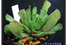 库珀天锦章 A.Berger)是景天科、天锦章属的多年生草本植物,植株矮小,短茎灰褐色。叶基本为长圆筒形,叶背面圆凸,正面较平,顶端叶缘有波浪形皱纹,表皮无毛,有光泽,叶色灰绿有暗紫色斑点。…全部>>