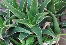 芦荟 Burm. f.)是百合目阿福花科多年生草本植物。常绿,地上茎很短;叶片肥厚多汁,呈狭披针形,基部宽阔为粉绿色,边缘有刺状小齿;花有黄色或赤色斑点;果实呈三角形;种子多数。花期在冬末。…全部>>
