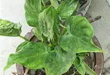 尖尾芋 Schott)是天南星科海芋属直立草本植物。尖尾芋地上茎圆柱形;叶膜质或亚革质,宽卵状心形;花序梗圆柱形,常单生;花佛焰苞近肉质;能育雄花序近纺锤形,黄色;浆果近球形。花期5月。因其叶片盾状,…全部>>