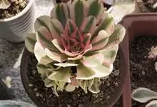 红缘莲花掌属蔷薇目、景天科植物,原产大西洋的加那利群岛。质厚,蓝绿色,被白霜,叶缘红褐色。聚伞花序,花浅黄色,有时带红晕。叶形叶色较美,有一定的观赏价值,多盆栽用于点缀室内;可放置于电视、电脑旁,…全部>>