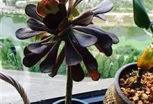 黑法师是景天科莲花掌属植物,自然界不存在分布。紫黑色的叶片呈莲座状层叠排列,给人以庄重神秘之感,观赏价值高。…全部>>