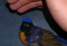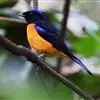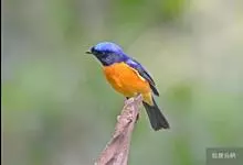 棕腹大仙鹟:体重24-28克,体长15-17厘米,是一种小型的色彩亮丽的鹟。雄鸟上体深蓝,下体棕色,脸黑,额、颈侧小块斑、翼角及腰部亮丽闪辉蓝色。与棕腹仙鹟易混淆,区别在色彩较暗。雌鸟灰褐,…全部>>