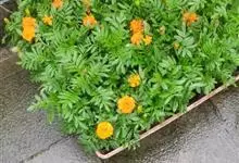 万寿菊是菊科万寿菊属一年生草本植物,别名孔雀菊、缎子花、臭菊花、西番菊、红黄草、小万寿菊、臭芙蓉、孔雀草。万寿菊茎近基部分枝。叶羽状分裂,长5-10厘米,宽4-8厘米,裂片长椭圆形或披针形,具锐齿,…全部>>
