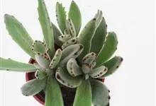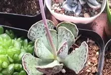江户紫,景天科伽蓝菜属草本植物,是多年生草本花卉。花白色,但栽培中很少能见到花,常作观叶植物栽培。…全部>>