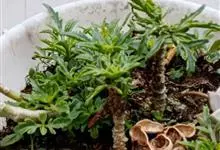 伽蓝菜是景天科伽蓝菜属植物。多年生草本,高20-100厘米。叶对生,中部叶羽状深裂,全长8-15厘米,裂片线形或线状披针形。聚伞花序排列圆锥状,长10-30厘米;苞片线形。花期3月。…全部>>