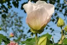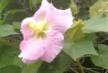 木芙蓉,锦葵科木槿属落叶灌木或小乔木。小枝上有细绒毛;叶片为卵状心形,托叶为披针形,常早落;花单生,花萼为钟形,花冠初为白色或淡红色,后逐渐变为深红色;果实为扁球形,有淡黄色的毛附着。花期8到10月。…全部>>