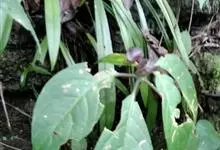 半蒴苣苔是苦苣苔科、半蒴苣苔属多年生草本植物。茎上升,高可达40厘米,具节,不分枝,肉质,散生紫斑,叶对生;叶片椭圆形或倒卵状椭圆形,稍肉质,干时草质,无毛或被白色短柔毛,上面深绿色,…全部>>