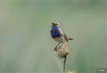 蓝点颏亦称“蓝喉歌鸲”,通称蓝靛颏儿。身体大小和麻雀相似,体长12-13厘米,体重17-18克。头部、上体主要为土褐色。眉纹白色。尾羽黑褐色,基部栗红色。颏部、喉部辉蓝色,下面有黑色横纹。下体白色。…全部>>