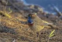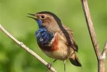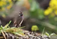 蓝点颏亦称“蓝喉歌鸲”,通称蓝靛颏儿。身体大小和麻雀相似,体长12-13厘米,体重17-18克。头部、上体主要为土褐色。眉纹白色。尾羽黑褐色,基部栗红色。颏部、喉部辉蓝色,下面有黑色横纹。下体白色。…全部>>