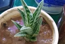 翠花掌是百合科、芦荟属植物。多年生肉质植物。株高20~30厘米具短茎,叶片三角剑形,肥厚多肉。表面下凹呈“V”形。叶长约12厘米,宽3-5厘米,有横向排列不规则的银白色或灰白色斑纹。松散的总状花序,…全部>>