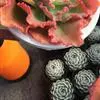 女王花笠,又名扇贝石莲花、女王花舞笠,是景天科拟石莲花属的多肉植物。由美国加利福尼亚州的育种师Dick Wright于1964年培育。特征是呈大波浪状褶皱的红色叶缘和气质高贵的粉紫色调。…全部>>