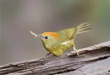 金头穗鹛小型鸟类,体长10~11厘米,是一种黄色小鸟。头顶金黄色有黑色纵纹,眼先黑色,在头、颊和耳羽金黄色的衬托下亦甚醒目。上体橄榄黄色,下体亮黄色,腹和两胁沾绿。…全部>>