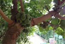 大果榕是桑科榕属的小乔木,株高可达10米;幼枝被柔毛;叶互生,宽卵状心形或近圆形;雄花无梗、匙形、花丝长,雌花生于雌株榕果内,子房白色;榕果簇生于树干基部或老茎短枝上、扁球形或陀螺形,…全部>>