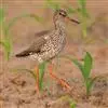 红脚鹬:体长28厘米,上体褐灰,下体白色,胸具褐色纵纹。飞行时腰部白色明显,次级飞羽具明显白色外缘。尾上具黑白色细斑。虹膜黑褐色,嘴长直而尖,基部橙红色,尖端黑褐色。脚较细长,亮橙红色,…全部>>