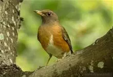 赤颈鸫是鸫科、鸫属中型鸟类,体长22-25厘米。上体灰褐色,有窄的栗色眉纹。颏、喉、上胸红褐色,腹至尾下覆羽白色,腋羽和翼下覆羽橙棕色。虹膜暗褐色,嘴黑褐色,下嘴基部黄色,脚黄褐色或暗褐色。…全部>>