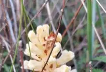 黄花列当是列当科、列当属植物。二年生或多年生草本,株高10-40厘米,全株密被腺毛。茎不分枝,直立,基部稍膨大。叶卵状披针形或披针形,干后黄褐色。花序穗状,圆柱形,长8-20厘米,顶端锥状,…全部>>