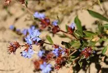 蓝花丹是白花丹科、白花丹属的常绿亚灌木。高约1米;叶薄,呈菱状卵形至狭长卵形;穗状总状花序,总花梗短,花冠淡蓝色至蓝白色,呈倒卵形,苞片呈线状狭长卵形,小苞呈狭卵形或长卵形,…全部>>