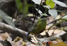 巨嘴柳莺:两性羽色相似。上体包括两翅的内侧飞羽橄榄褐色,尾上覆羽转为棕褐色,两翅的外侧覆羽和飞羽均呈暗褐色,各羽缘以棕褐色;尾羽亦暗褐色,边缘微棕褐色;眉纹或眼圈的上、下部均为棕色;自眼先有一暗褐色…全部>>