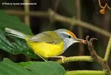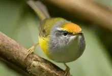 金头伪缝叶莺:体长10-12厘米,是一种体型小的棕顶冠、黄色腹森林莺类。头顶亮黄色,具明显的黄色眉纹,头侧、后颈和颈侧暗灰色,上体橄榄绿色,颏、喉及上胸部灰白,下胸及腹部为鲜艳黄色。两翅和尾褐色,羽…全部>>