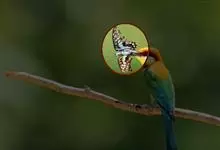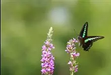 青带凤蝶Graphium sarpedon ,又名青凤蝶,是最普遍的中型凤蝶,飞行速度很快。青带凤蝶的翅膀中央有许多浅蓝色的斑点,很整齐地排列成一条直线。这些斑点由上而下逐渐变大,就像一条青色的带子。全部>>