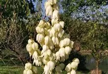 丝兰是天门冬科丝兰属植物。茎短或无茎;圆锥花序烛台状,花朵杯形,下垂,白色;叶基部呈剑形放射状,被白粉,革质;花期8—10月。丝兰原产于北美,在中国长江流域一带和华北地区均有栽培,长江以南地区也有分布。…全部>>