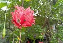 吊灯扶桑 Hook. f.)为锦葵科木槿属的常绿灌木。高达3米;小枝常下垂;叶椭圆形或长圆形,先端尖或短渐尖,基部楔形;花梗细,无毛或具纤毛,中部具节;蒴果长圆柱形;花期全年。因似灯笼高挂,…全部>>