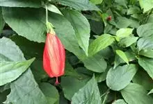 垂花悬铃花是锦葵科、悬铃花属常绿小灌木,外型略似朱槿,但叶片较为狭长浓绿;高30-60厘米,叶片互生,卵形或卵状矩圆形,单叶,有时浅裂,叶形变化较多,叶面具星状毛。花红色,花通常单生于上部叶腋处,下垂,…全部>>