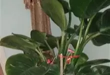 红苞喜林芋是天南星科喜林芋属植物,攀援植物,分枝节间淡红色,长3-8厘米,粗1厘米。鳞叶肉质,红色,背面有2条龙骨状突起,长7-10厘米。叶柄腹面扁平,背面圆形,长15-25厘米,粗7-10毫米。…全部>>