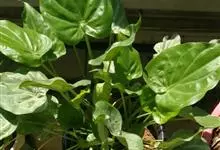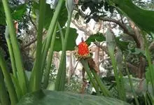 海芋 K. Koch),是天南星科海芋属的大型常绿草本植物;具匍匐根茎,有直立地上茎,基部生不定芽条;叶多数,亚革质,草绿色,箭状卵形,叶柄绿或污紫色,螺旋状排列,粗厚;花序梗圆柱形,绿色,有时污紫色,…全部>>