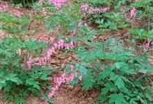 荷包牡丹 Fukuhara),是罂粟科荷包牡丹属的多年生草本植物,株高30-60厘米,具肉质根状茎;茎直立呈圆柱形;叶二回三出全裂,状似牡丹叶;总状花序顶生,基部为心形,花瓣紫红色至粉红色,稀白色,…全部>>