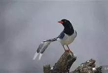 红嘴蓝鹊,别名山鹊、长尾鹊,是鸦科蓝鹊属的一种观赏性较强的大型鸣禽。该物种为体长54~65cm,头、颈、喉和胸黑色,头顶至后颈有一块白色至淡蓝白色或紫灰色块斑,其余上体紫蓝灰色或淡蓝灰褐色。尾长呈凸状,…全部>>