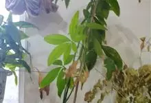 瓜栗 Walp. ),俗称发财树,木棉科小乔木,高4-5米,树冠较松散,幼枝栗褐色,无毛。小叶具短柄或近无柄。花单生枝顶叶腋;花梗粗壮,被黄色星状茸毛,脱落;萼杯状,近革质;花瓣淡黄绿色,狭披针形…全部>>