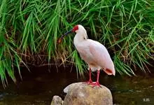 朱鹮是鹈形目鹮科朱鹮属的鸟类动物。其雄鸟通体白色,羽干及两翅与尾等均沾染粉红色;颈项上有很多长矛状羽毛,形成羽冠,耸立时非常夺目;嘴长而向下曲,呈黑色,先端朱红,脚的裸露部分亦呈亮红色。雌鸟羽色略同,…全部>>