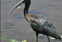 圣鹮头、颈黑色,身体白色,初级和次级飞羽尖端黑色。喙长且厚、黑色下弯,跗蹠与趾黑色。下背部有大量黑色纱状装饰羽,翼下裸露皮肤红色,体侧有时带黄褐色。亚成鸟的头、颈有羽毛,斑驳黑色带有白色纵纹,…全部>>