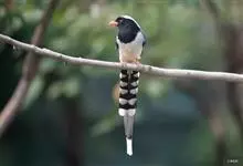 红嘴蓝鹊,别名山鹊、长尾鹊,是鸦科蓝鹊属的一种观赏性较强的大型鸣禽。该物种为体长54~65cm,头、颈、喉和胸黑色,头顶至后颈有一块白色至淡蓝白色或紫灰色块斑,其余上体紫蓝灰色或淡蓝灰褐色。尾长呈凸状,…全部>>