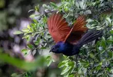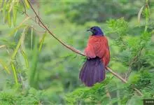 褐翅鸦鹃,是鹃形目鸦鹃科鸦鹃属的鸟类。褐翅鸦鹃的身体为黑色;头颈和胸带蓝紫色金属光泽并具黑亮的羽干纹,下胸至腹部泛金属绿光泽;两翼和肩部为棕栗色,外侧飞羽具暗色羽端,尾羽闪铜绿色光泽;虹膜赤红色,…全部>>