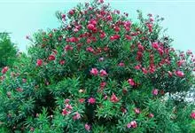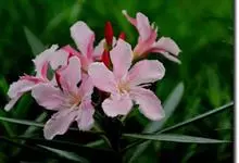 夹竹桃,又名红花夹竹桃、欧洲夹竹桃,是夹竹桃科夹竹桃属的一种常绿直立大灌木,枝条灰绿色,含水液。叶披针形,3叶轮生。聚伞花序顶生,花冠粉红至深红色,花冠漏斗状,有特殊香味。蓇葖果,圆柱形。种子长圆形,…全部>>
