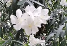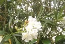 白花夹竹桃是夹竹桃科、夹竹桃属植物夹竹桃的栽培品种。常绿直立大灌木,枝条灰绿色;嫩枝条具稜,被微毛,老时毛脱落。叶3-4枚轮生,下枝为对生,叶面深绿,叶背浅绿色;侧脉纤细平行与中脉成直角;叶柄扁平,…全部>>