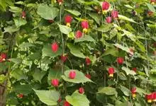 红萼苘麻是锦葵科、苘麻属常绿软木质灌木,叶绿色,长5-10厘米,心形,叶端尖,叶缘有钝锯齿,有时分裂,有细细的叶柄;叶互生,掌状叶脉;花单生于叶腋,具长梗,下垂;花萼红色,半套着大约4厘米长的花瓣,…全部>>