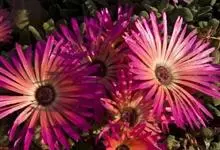 冰叶日中花,是番杏科日中花属的一年生或二年生草本植物。叶互生,卵形或长匙形,基部近心形,抱茎,边缘波状;花淡玫瑰红或带白色,近无梗。冰叶日中花在嫩绿色的叶面和嫩茎上长着密密麻麻的透明囊状细胞,…全部>>