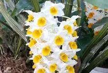束花石斛是兰科石斛属植物。茎粗厚,肉质,下垂或弯垂,圆柱形,不分枝,具多节。叶二列,互生于整个茎上,纸质,长圆状披针形。伞状花序近无花序柄,每2-6花为一束,侧生于具叶的茎上部;花黄色,…全部>>