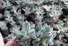紫珍珠是景天科石莲花属的多年生肉质草本植物。植株中小型;叶片肉质,匙形,呈莲座状紧密排列;叶片粉紫色,叶缘呈粉白色,光照充足时颜色亮丽,不足时叶色会呈现深绿色或灰绿色,叶面光滑,被轻微白粉,…全部>>