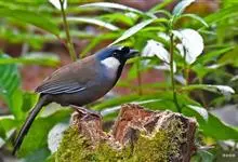 黑喉噪鹛是噪鹛属鸟类。体长24-29厘米,体重75-90克。雄鸟前额、眼先、眼周和眼后纹以及颊、须和喉黑色;黑色前额和蓝灰色头顶之间有道白色细斑;颈侧具椭圆形白斑,…全部>>