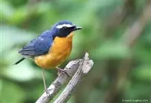 栗腹歌鸲是鹟科、歌鸲属小型鸟类,体长12-14厘米。雄鸟前额和头侧黑色,一条长而显著的白色眉纹在黑色的头部极为醒目,头顶至尾等其余上体灰蓝色,下体栗棕色或栗色。雌鸟上体橄榄褐色,下体白色沾赭棕色。…全部>>