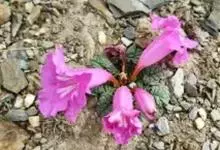 藏波罗花为紫葳科矮小宿根草本植物。 生于海拔3600-5000 米的高山沙质草甸及山坡砾石垫状灌丛中,喜光、耐寒、耐瘠薄。为高山花卉,短总状花序顶生,花冠紫红色,稀粉红色,花冠管橘黄色。…全部>>