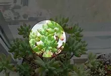乙女心是景天科景天属的多肉植物,原产墨西哥。多年生亚灌木,茎叶肉质,株高5-30厘米。叶片簇生于茎顶,圆柱状,淡绿色或淡灰蓝色,叶先端具红色,叶长3~4厘米。花小,黄色。春秋为生长季,…全部>>